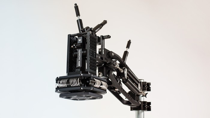 La version Standard est conçue pour fonctionner avec des gimbals et des têtes pesant entre 5 et 13 kg avec la caméra. Cette version est livrée avec deux ressorts de réduction des vibrations standard de 7,0 mm pendant les prises de vue en mouvement dynamique. L'amortissement est effectué sur toutes les axes, Pan, Tilt et Roll, par des amortisseurs hydrauliques personnalisés qui sont entièrement réglables. La force à laquelle le bras réduira les vibrations est réglée à l'aide d'un bouton qui a 22 niveaux, assurant un réglage précis pour chaque type de prise de vue. La version The Black Arm Standard est livrée avec un amortisseur pour chacun des trois axes.